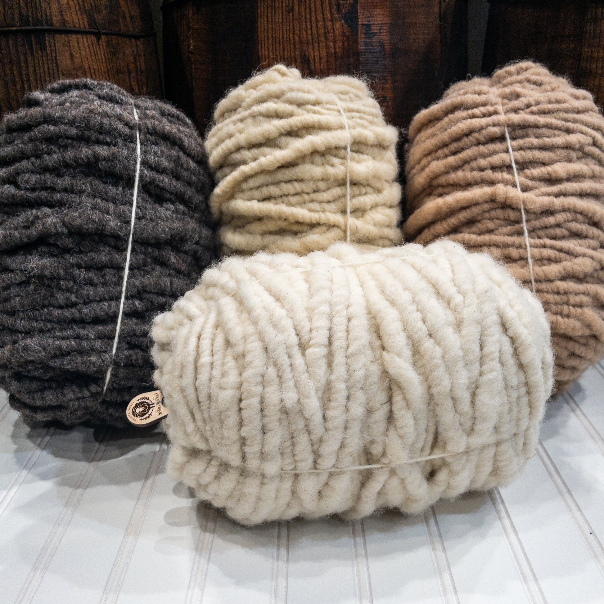 Our solid color rug yarn is thick, strong, and ready for work. Each bump weighs approximately 30 ounces and measures about 100 yards in length, with an average diameter of 3/8". It’s spun around a durable wool core using 100% wool fiber for both structure and softness.